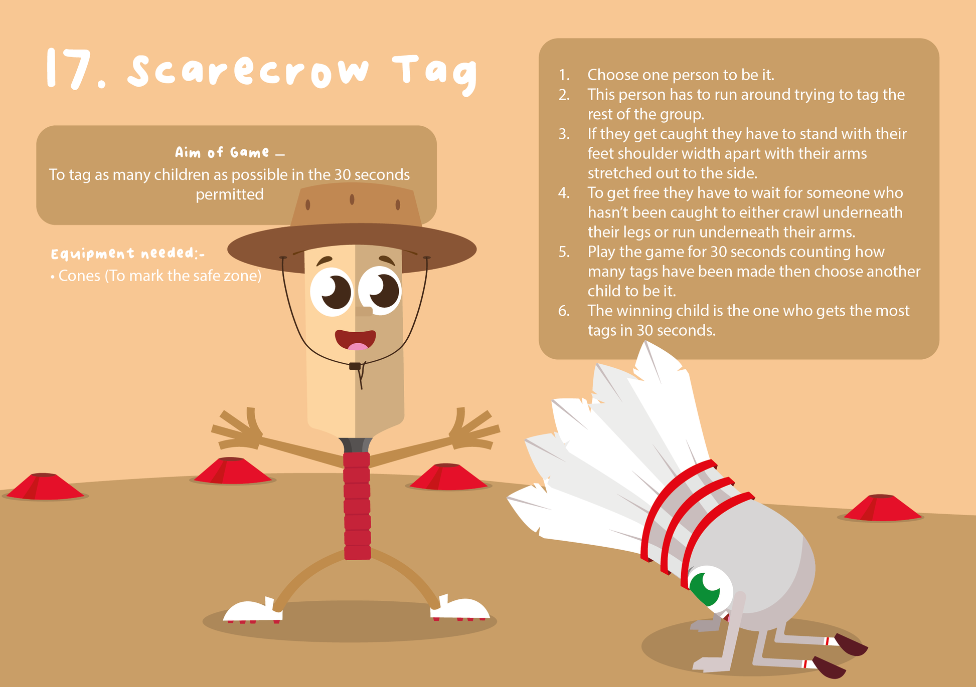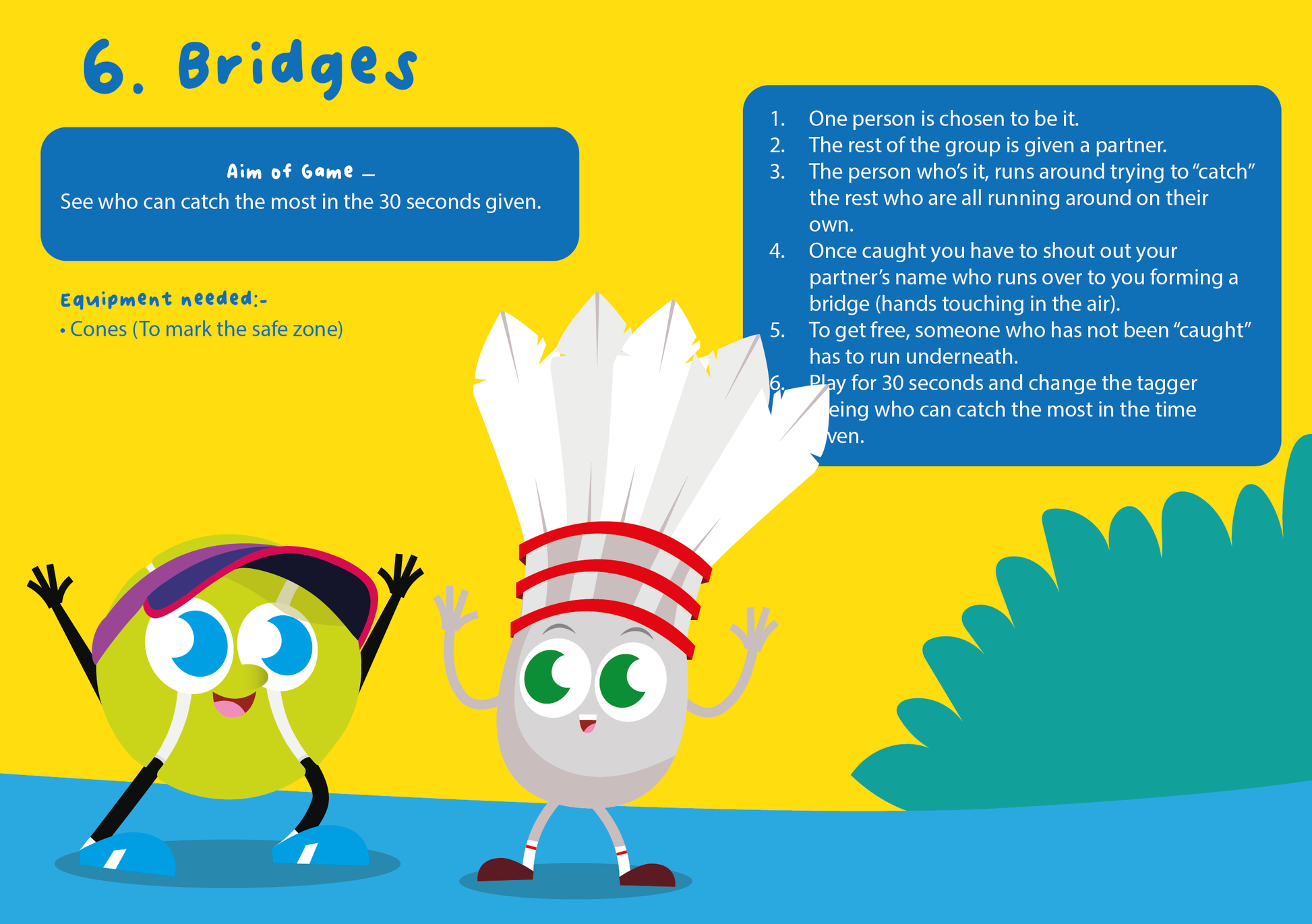 20 of the best PE Tag Games including how to play Hoop Tag, Bridges, Foxes Tails and Fishes that can be used as warm ups, fillers or adapted to be used as part of a specific sports coaching session. When delivered with pace, energy and enthusiasm these Tag Games always engage, motivate and put a smile on all the children's faces. With simple and easy to follow instructions you can also allow the children to take ownership and have a go at delivering too.